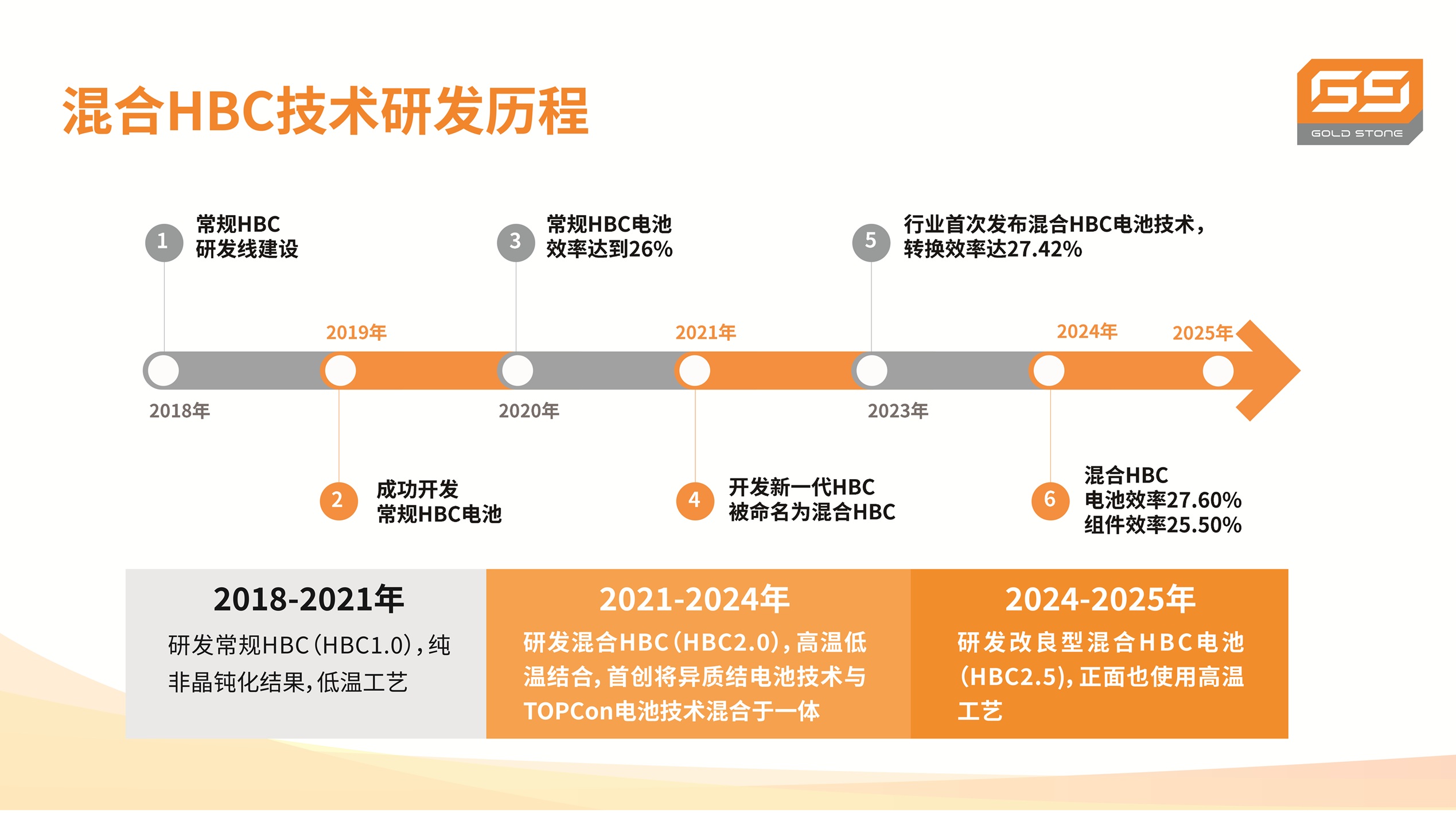 研发混合HBC(HBC2.0),高温低温结合,首创将异质结电池技术与TOPCon电池技术混合于一体
